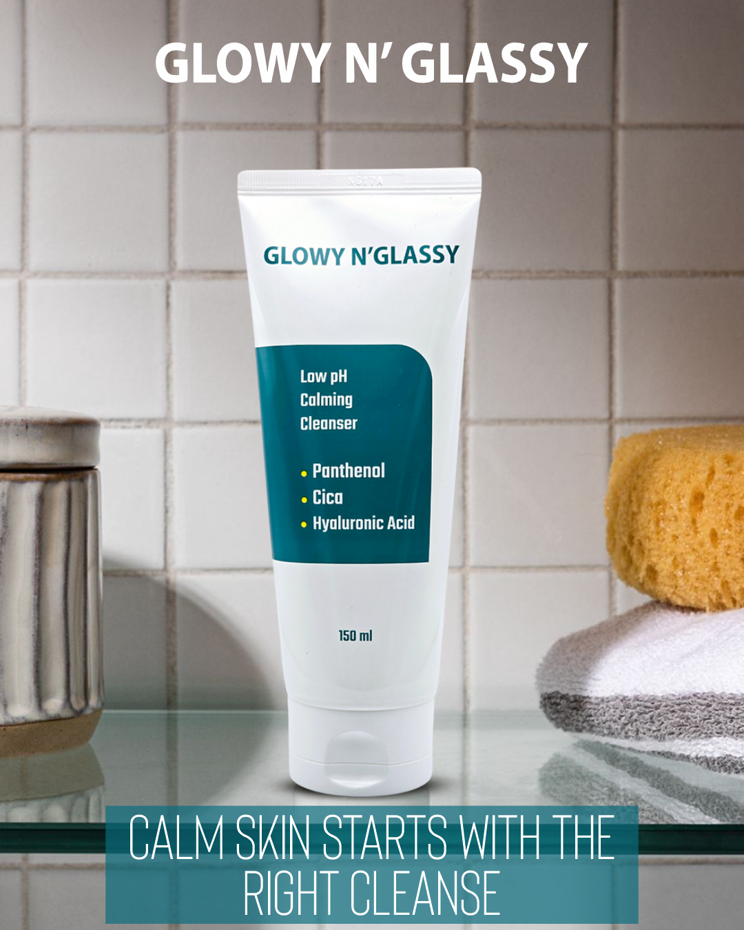 Glowy N’ Glassy Low pH Calming Cleanser, designed to help maintain your skin natural balance and protect against external dryness. Formulated with a gentle low pH this cleanser soothes and refreshes the skin without stripping away essential moisture. Perfect for all skin types, especially sensitive skin this calming cleanser creates a moisture barrier to keep your skin hydrated and healthy.